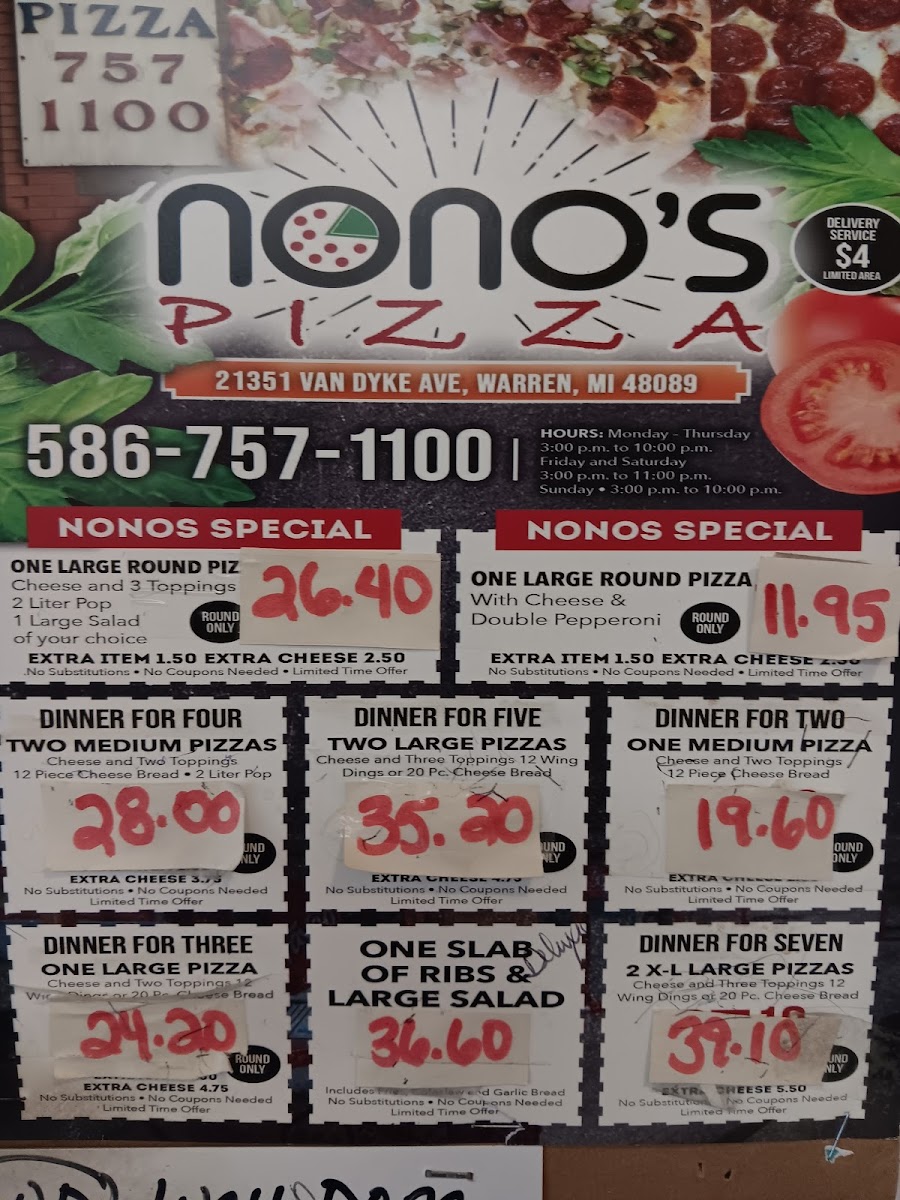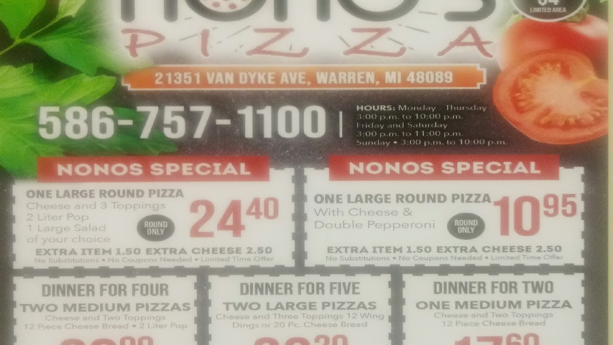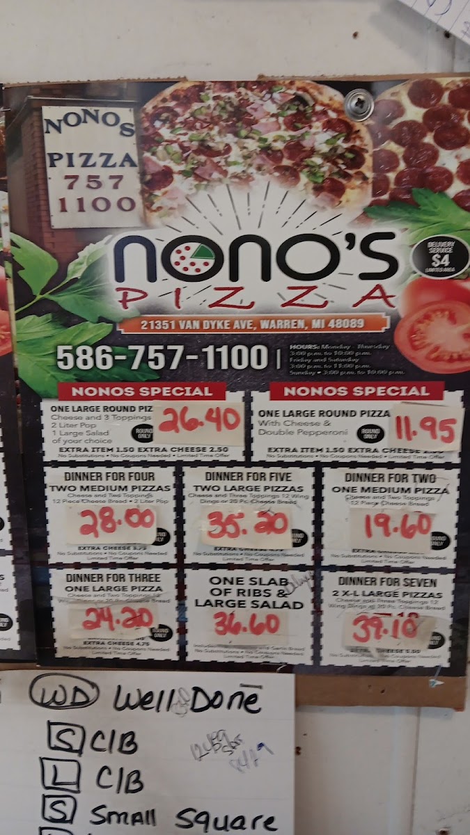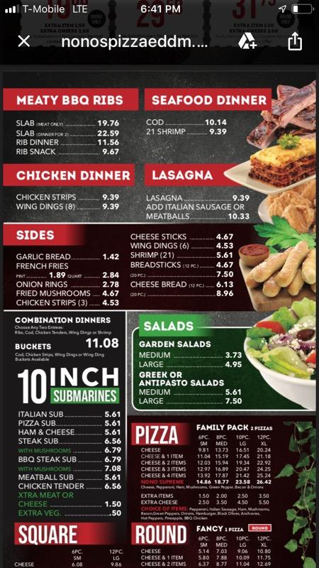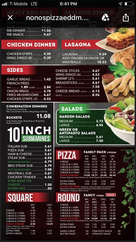 Nono's Pizza Menu